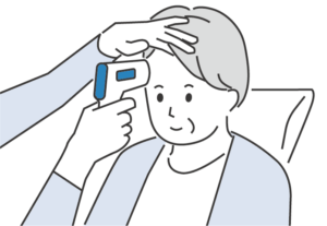 ![]() | バイタル測定 体温だけでなく、血圧などを含むバイタル測定を実施しています。 |